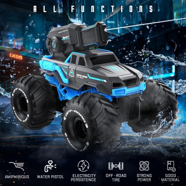 Powerful water, double fun:The function of the water gun adds unlimited fun to this toy car, and its effective range reaches 8-10m. You can use it to shoot the target, or make small waves on the water surface. Whether you play with your friends or play alone, you can feel extremely happy.