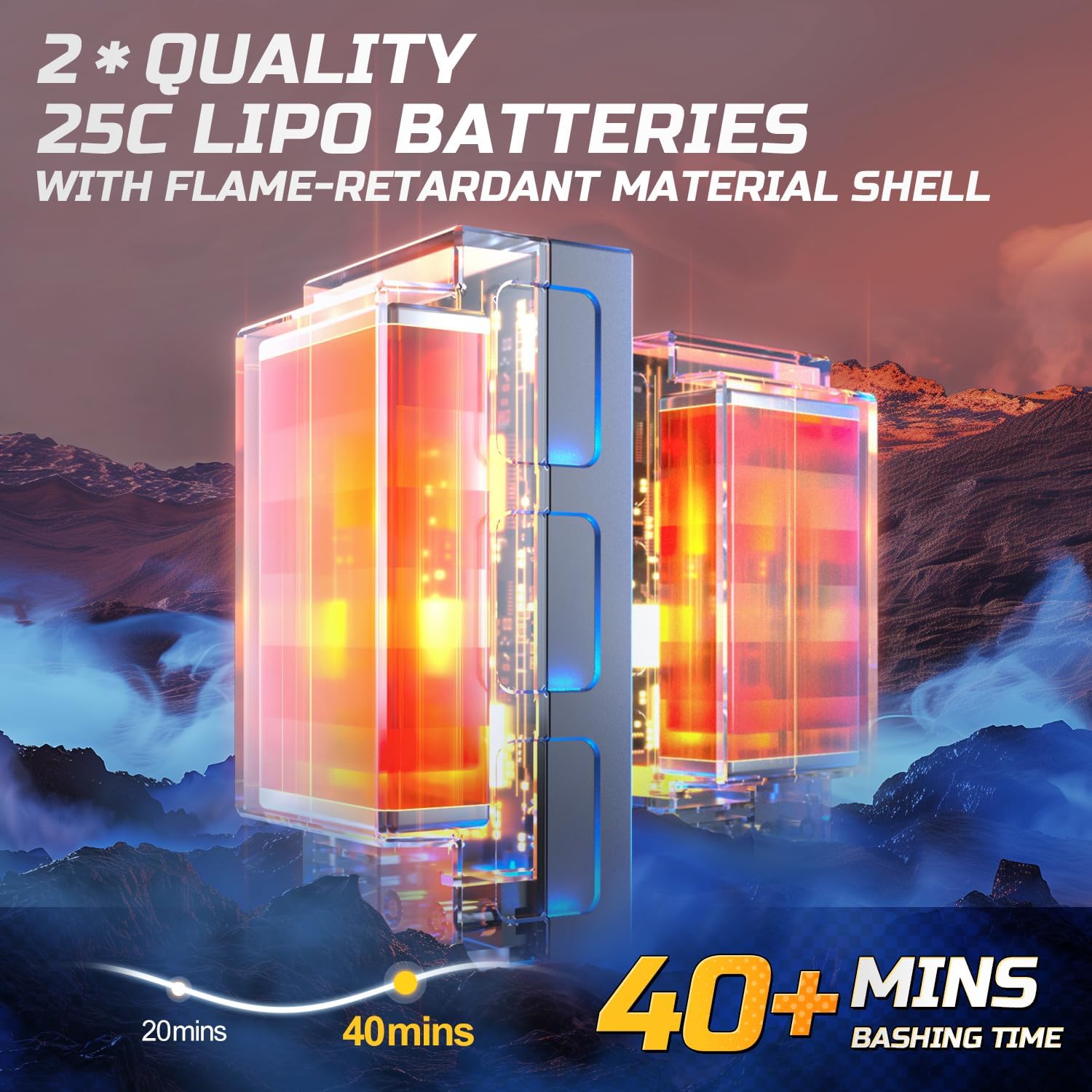 【Upgradable & Perfectly Compatible】Independent smart 2S/3S 45A ESC support the 3S-capable power system, 42+ mph (68 kph) top speeds is achievable in optimum conditions with 3S LiPo battery. With independent receiver, you can enhance its performance or personalize its appearance by adding accessories and parts, allowing you to tailor it to your preferences.
