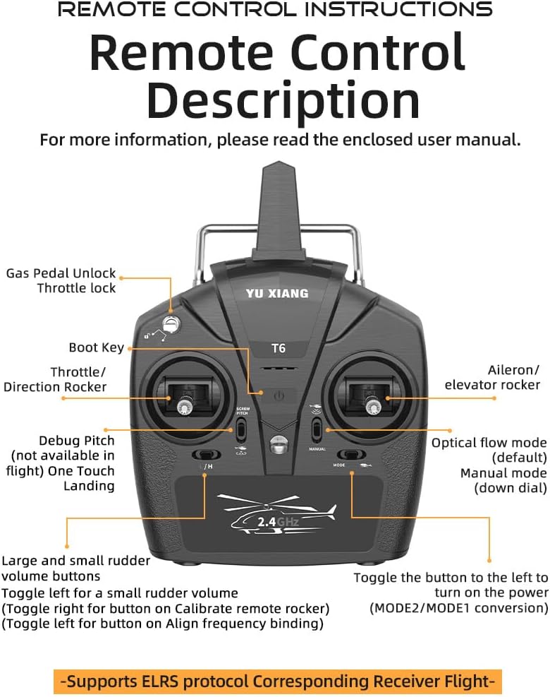 Beginner-Friendly Gyro: Featuring a 6-axis gyro, this helicopter provides stable, quick, and precise flight posture, perfect for beginners. Its high-precision optical flow positioning and barometer altitude hold function allow indoor and outdoor use with pinpoint accuracy. Additionally, the intuitive one-key inverted flight feature makes mastering inverted flight as easy as normal flying.