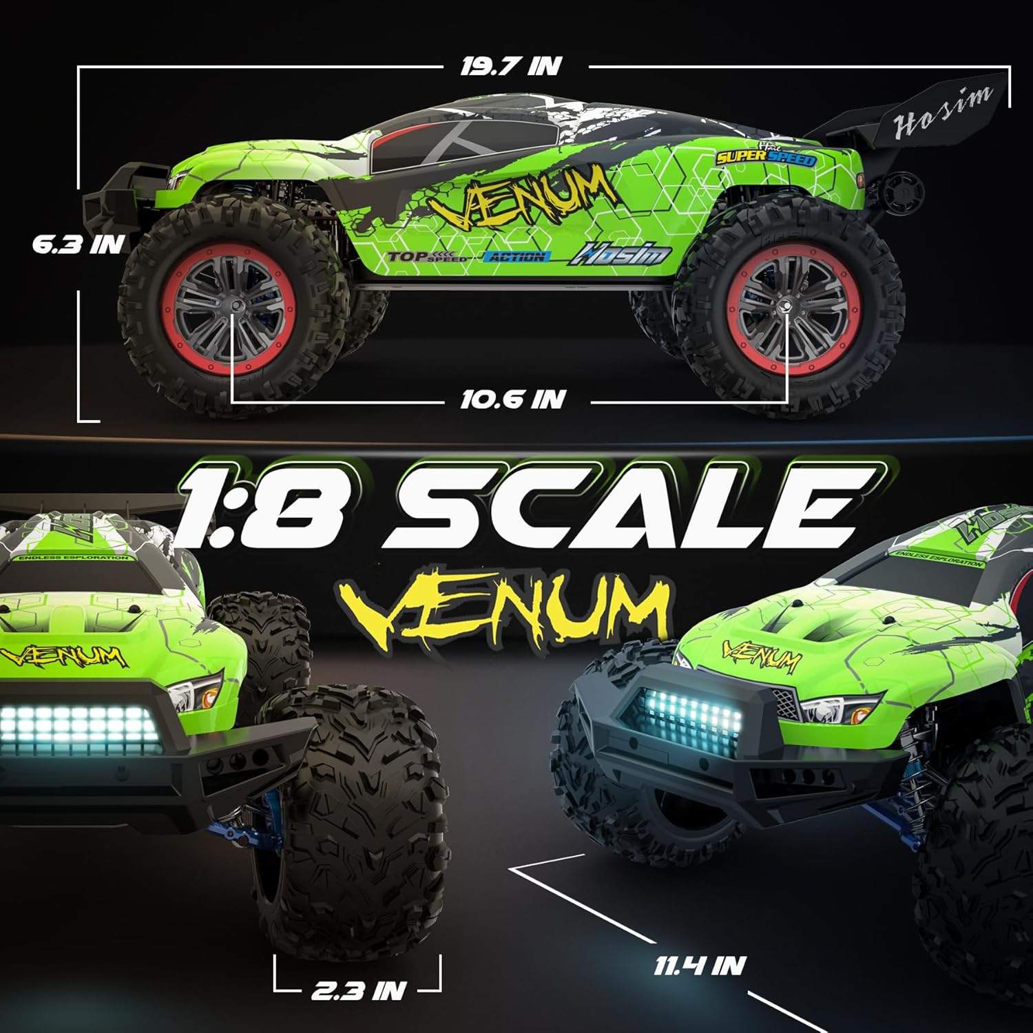 Hosim VENUM Mini 1:8 RC Cars for Adults Fast 80+KMH, Remote Control Truck 4X4 All Terrains Waterproof 2.4GHZ Off Road Hobby Grade Large High Speed RC Monster Truck with 3S Battery