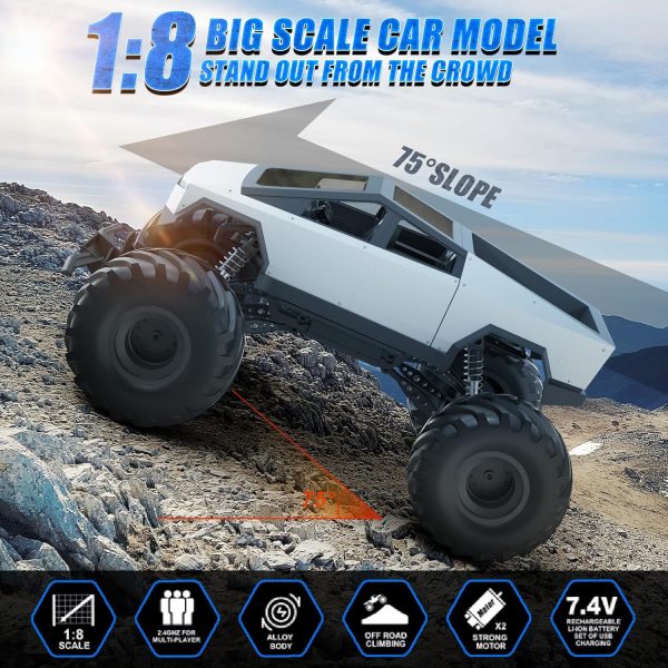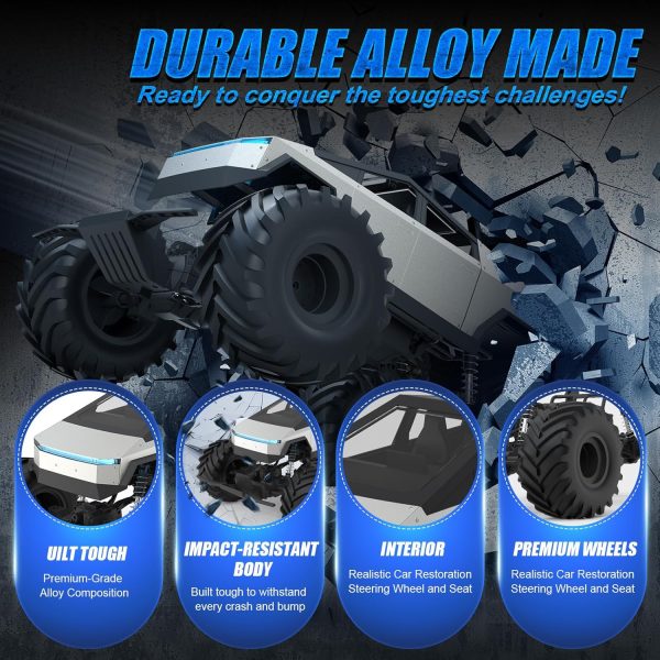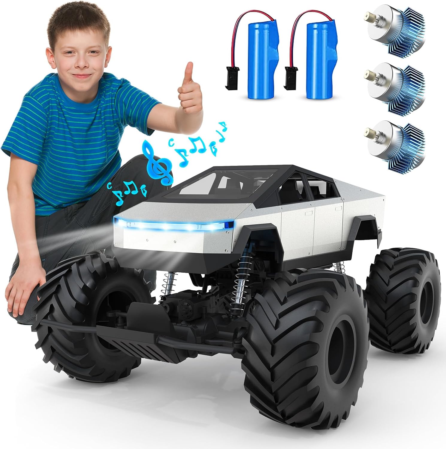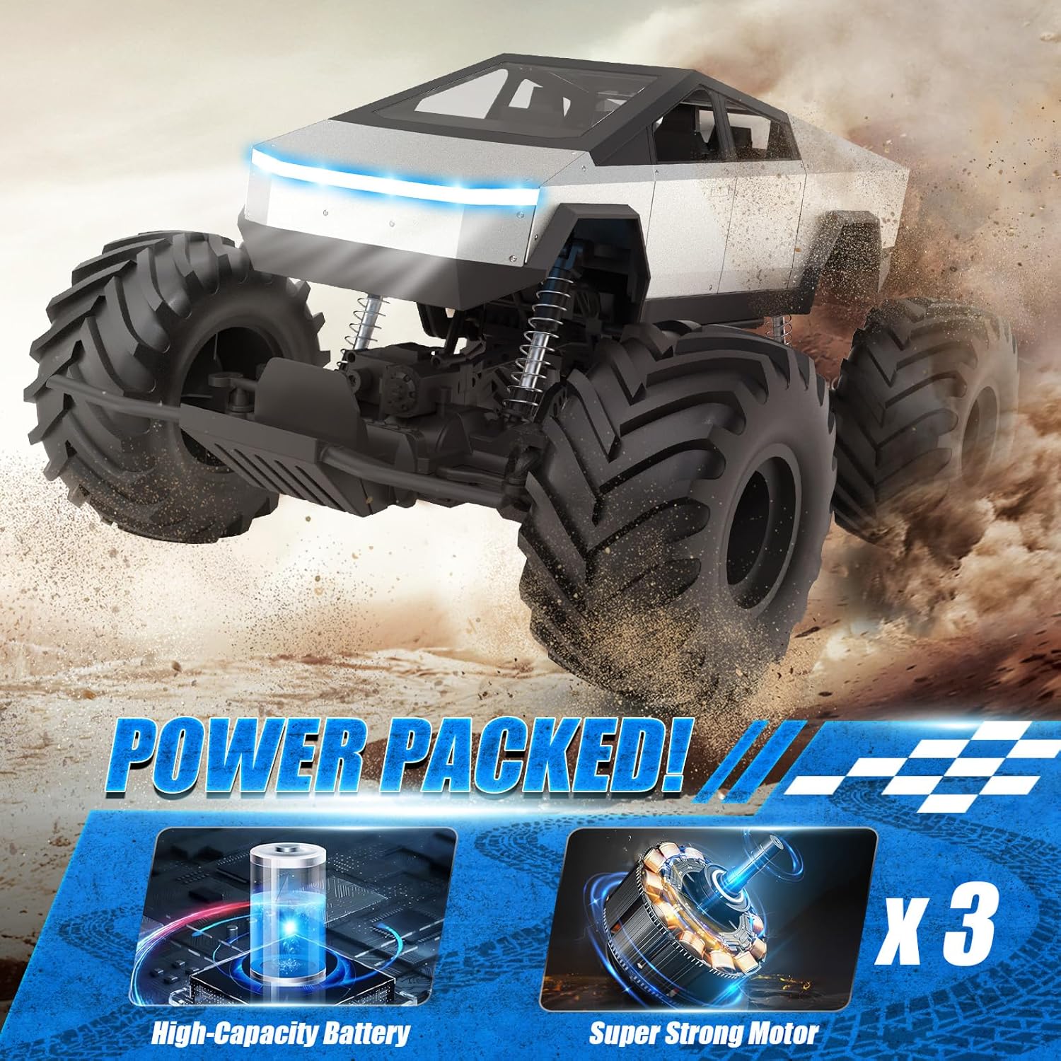 【Authentic Driving Experience】Feel the power of realistic driving with a high-torque motor and precise controls. Whether cruising on smooth roads or navigating tricky inclines, this 1:8 remote control cybertruck delivers an exhilarating experience that mirrors real-life driving thrills