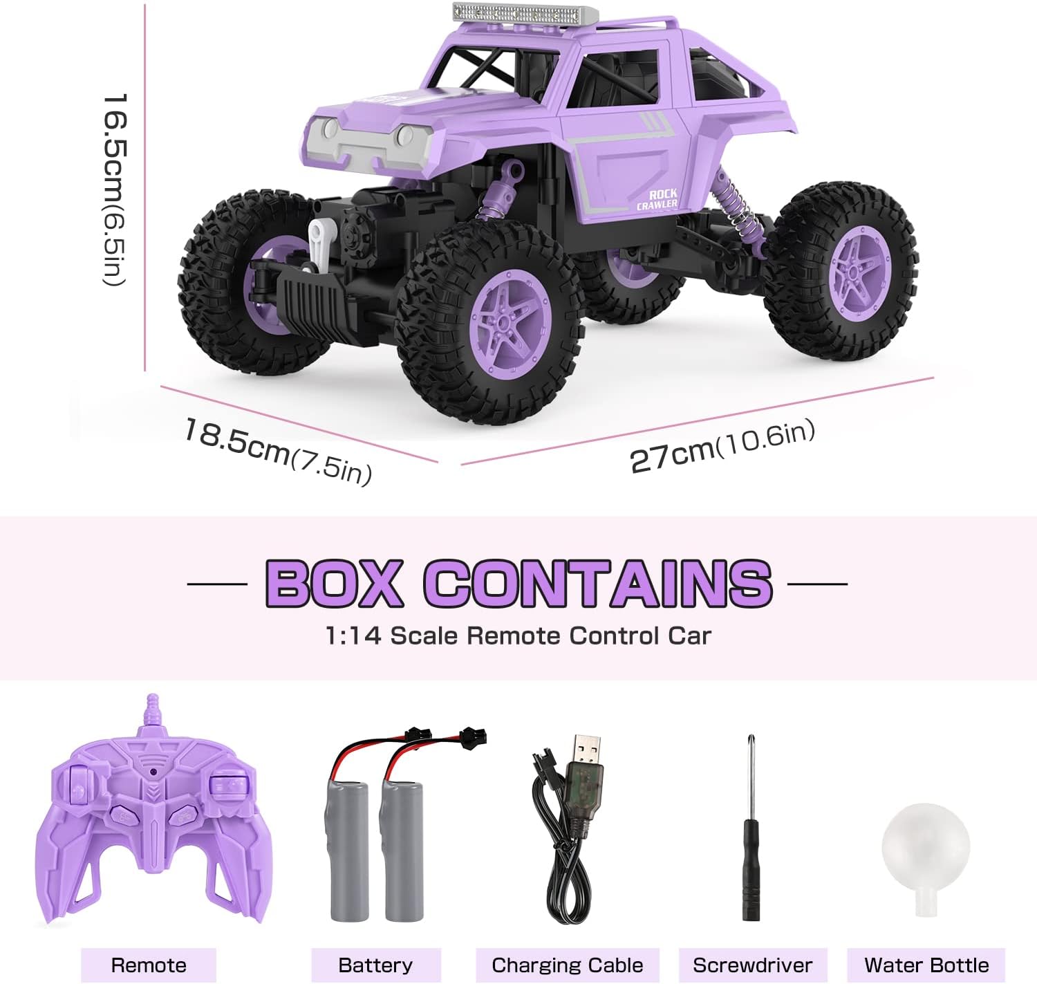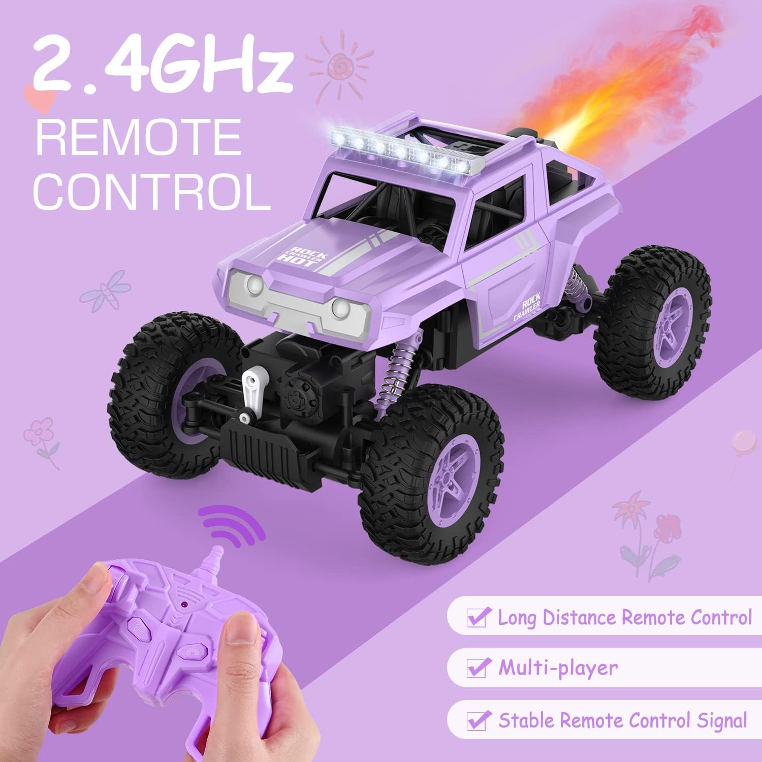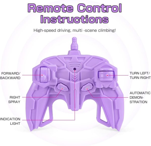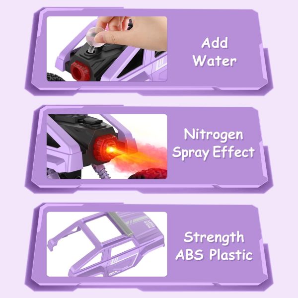 【Cute Design and Unique Spray Effect】 The RC car is made of high quality materials. High strength ABS plastic for beautifully realistic car body ; simulated climbing car tires; cool flashing lights on the roof. The nitrogen spray effect after adding water will bring you more fun when playing the remote control car!