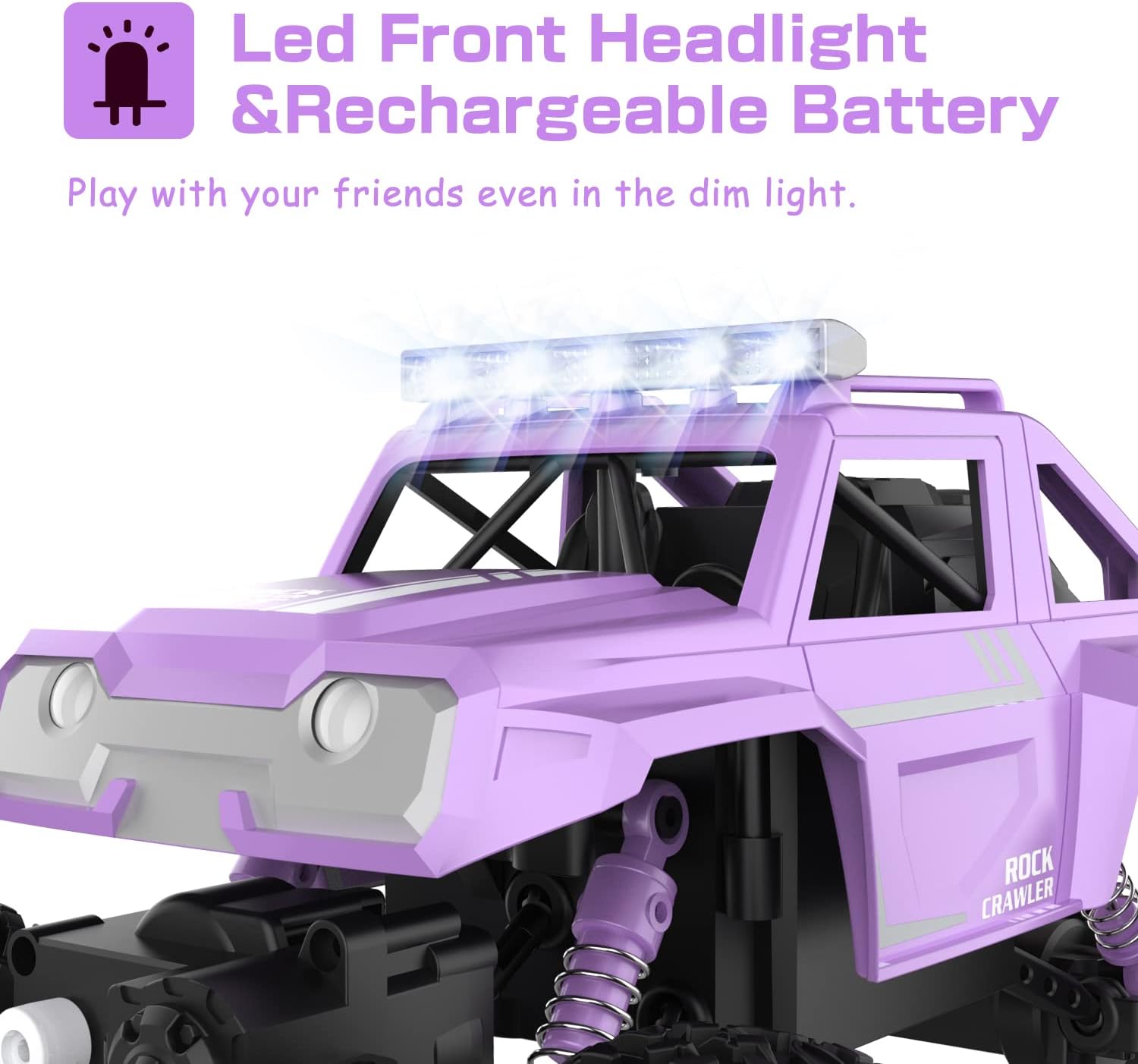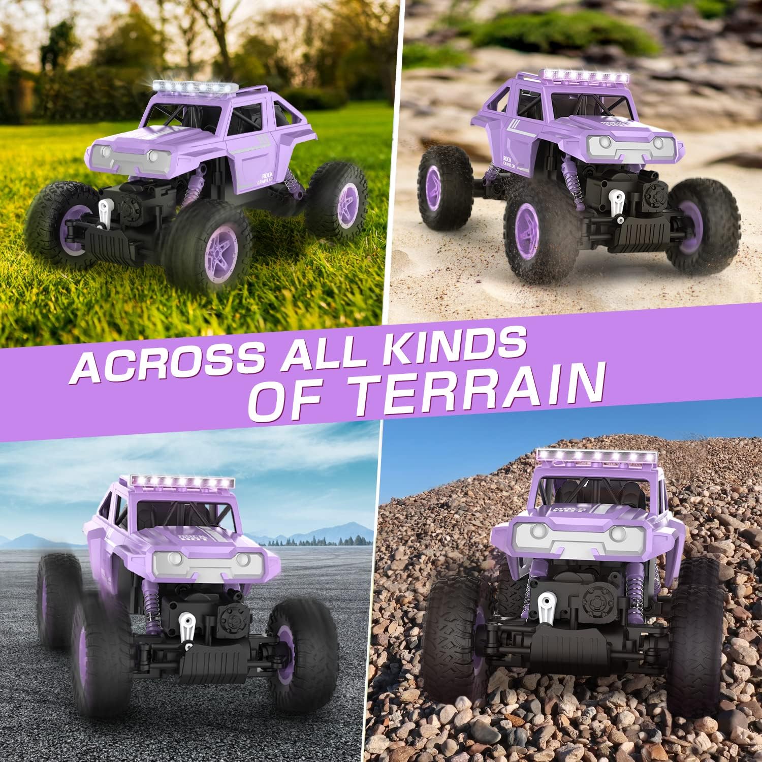 【All Terrain Rock Crawler】RC cars are great for climbing indoor/outdoor objects, you can easily control it on a variety of terrains, such as flat ground, grassland, muddy roads, sandland,etc.. It is the best choice for any level of monster rc truck enthusiast.