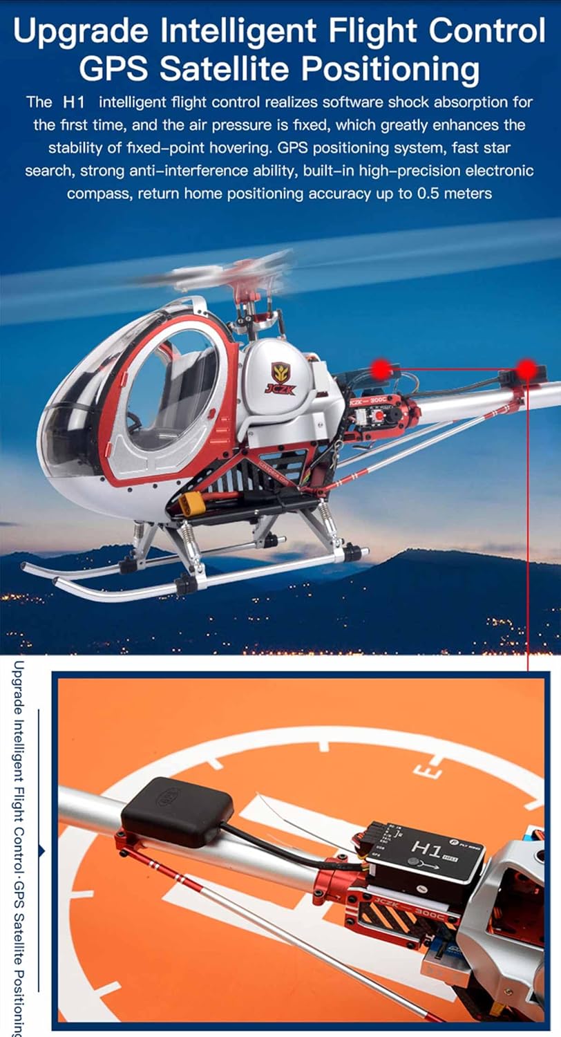 JCZK 300C PRO 2.4G 12CH Flybarless RC Helicopter Model with H1 Smart Flight Control and GPS Positioning (RTF Version/Red)