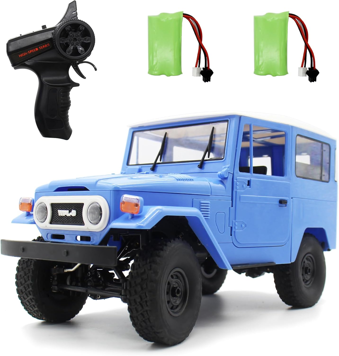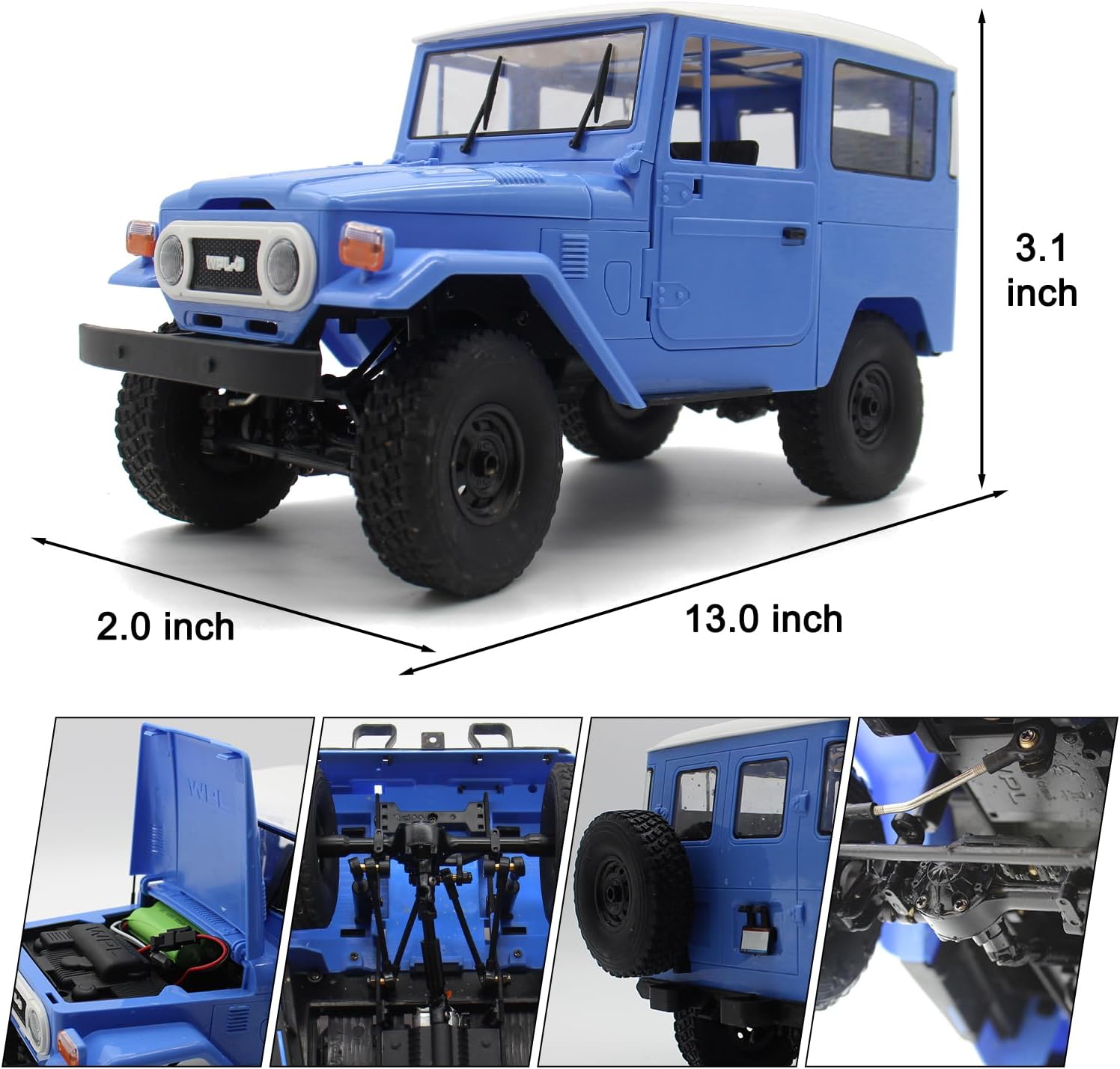 High Simulate Realtic Style Design:this RC off road vehicle is designed for FJ40 1:16 truck model, the openable door made of durable ABS material, non-toxic and tasteless. The front and rear led lights while the car is launching. The detachable rear spare tire design makes it look realistic, it is easy to put on or take out the tire in different scenes.